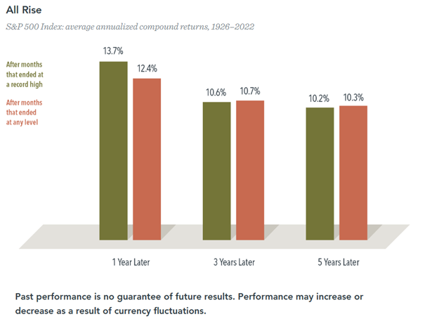 When markets reach new highs, we are sometimes asked about the wisdom of investing at the “top.” If you are a long-term investor, here’s why that shouldn’t be a big concern: